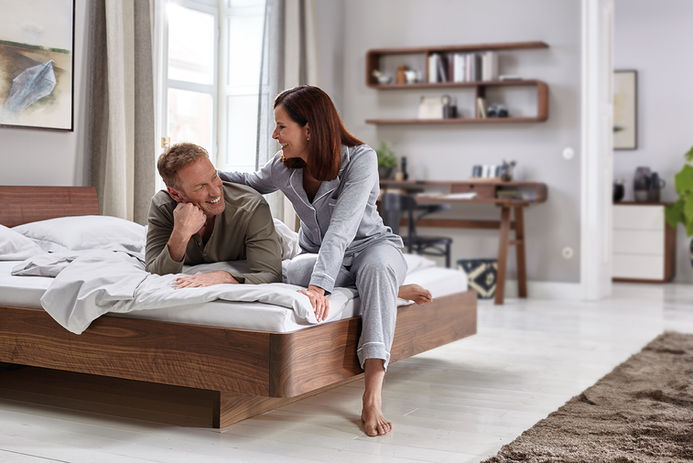 Massivholzbetten sorgen für ein besonders natürliches Schlaferlebnis. Die Betten der Holzmanufaktur sind hochwertig gearbeitet und überzeugen durch einfache und stabile Konstruktionen. Bei einigen Modellen können Sie zwischen quadratischen Holzfüßen oder Kufen und verschiedenen Rückenlehnen wählen. Die Betten sind in allen gängigen Maßen erhältlich und für unterschiedliche Einbautiefen optimiert. Wir empfehlen dazu das Schlafsystem Hüsler Nest. Weitere Betten finden Sie bei Hüsler Nest